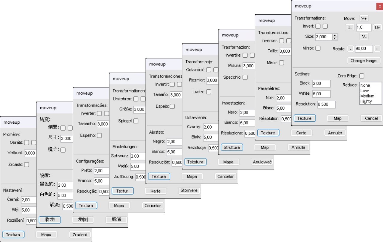 MoveUp is available in 9 of Rhino's languages (English, Portuguese, Spanish, Italian, French, German, Polish, Czech, Chinese).